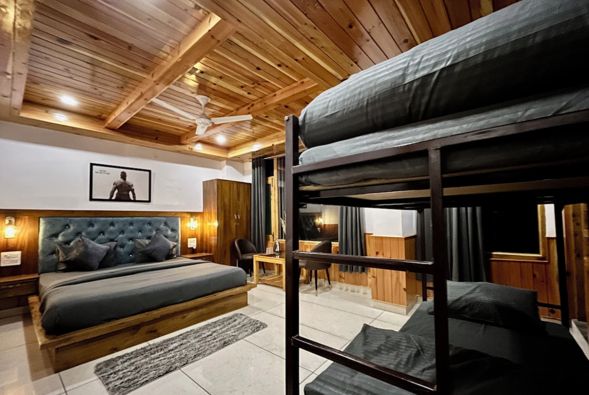 Our Dormitory Room is the ideal choice for backpackers, solo travellers, and budget groups looking for a comfortable and social stay in Kasol. This spacious shared room offers multiple beds, locker space, and essential facilities — all at an affordable price.